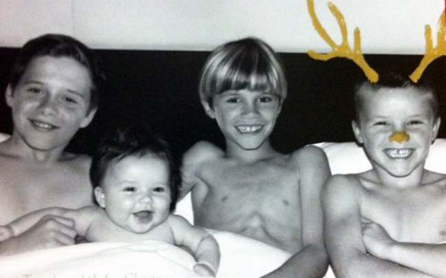 Το ζευγάρι χρησιμοποίησε τη χιουμοριστική φωτογραφία των παιδιών για χριστουγεννιάτικη κάρτα, με τη Χάρπερ να γελά ανάμεσα στα αδέλφια της Μπρούκλιν, Ρόμεο και Κρουζ.
