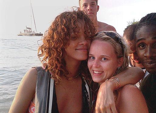 Η 20χρονη Kelly Gillott συνάντησε τυχαία τη Rihanna και της ζήτησε να φωτογραφηθούν μαζί κάτι που με μεγάλη της χαρά αποδέχτηκε η τραγουδίστρια. Η Kelly Gillott που εντυπωσιάστηκε από το γεγονός ότι μόνο ένας σωματοφύλακας συνόδευε τη Rihanna, την τράβηξε με το κινητό της να παίζει με τα κύματα και να απολαμβάνει χαλαρή τη μπίρα της στην παραλία.
