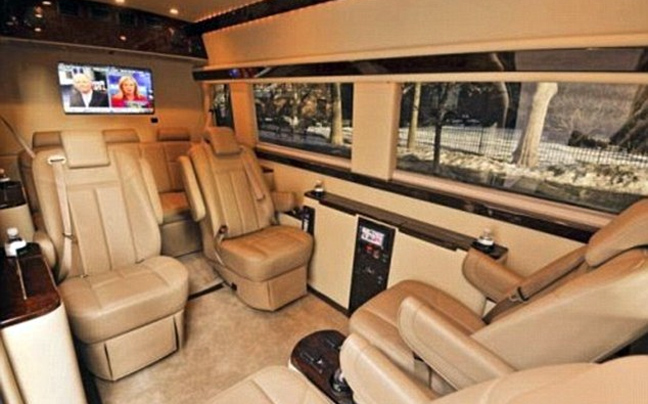 Δηλαδή με δερμάτινα καθίσματα (ειδική παραγγελία από την Ιταλία) και φυσικά… ένα μικρό μπάνιο με ντουζιέρα, νιπτήρα και λεκάνη… για να μη χρειαστεί να κάνει καμιά στάση… ανάγκης!