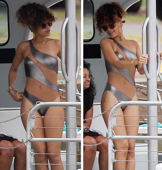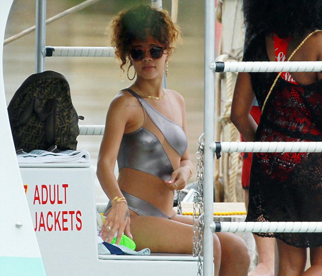 Με ένα όχι και τόσο κολοκακευτικό ασημί μπικίνι έκανε την εμφάνισή της η Rihanna στο πολυτελές της σκάφος, το οποίο αυτή την περίοδο έχει «αράξει» στη Χαβάη.