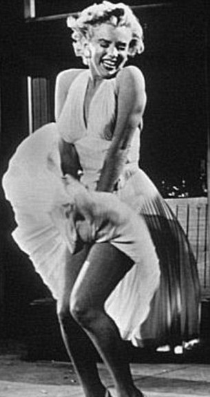 To φόρεμα της ηθοποιού θύμιζε ιδιαίτερα το θρυλικό άσπρο φόρεμα της Marilyn Monroe από την ταινία «The Seven Year Itch».
