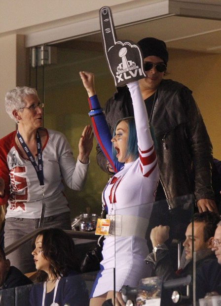 Φανατική οπαδός των «New York Giants», της ομάδας που κέρδισε τον μεγάλο αμερικανικό τελικό, η Katy Perry πήγε προετοιμασμένη στο γήπεδο.