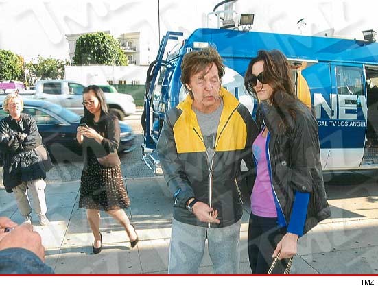 Ο Paul McCartney και η σύζυγός του Nancy Shevell άφησαν ανθοδέσμη σε ένα αυτοσχέδιο μνημείο που έχει στηθεί έξω από το ξενοδοχείο Ηilton στο Beverly Hills προς τιμήν της Γουίτνεϊ Χιούστον.