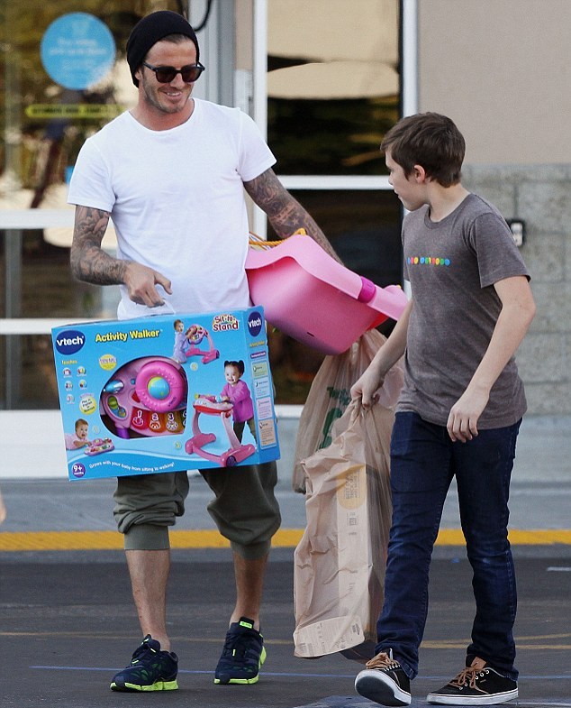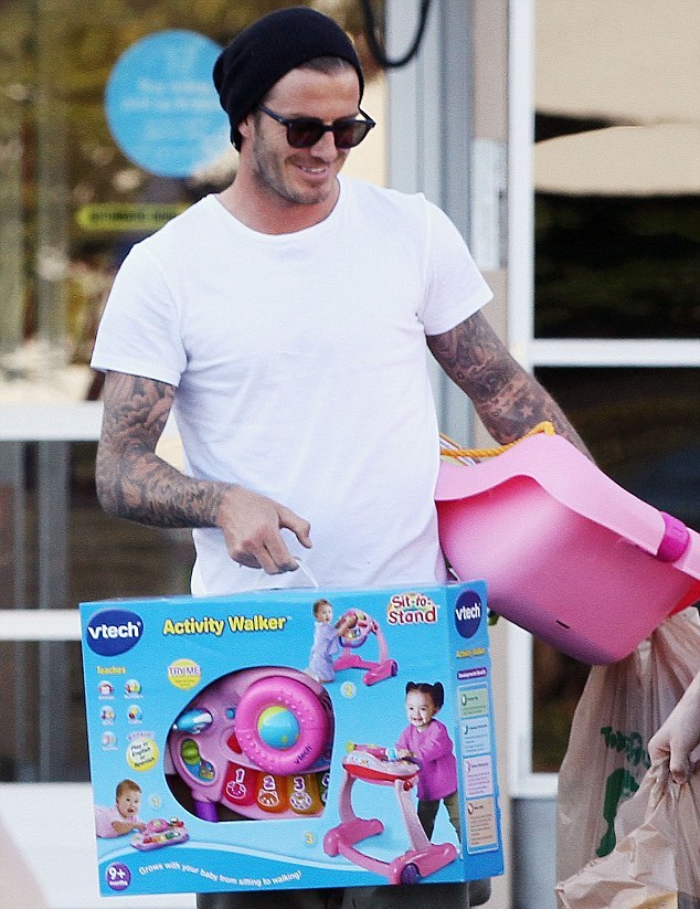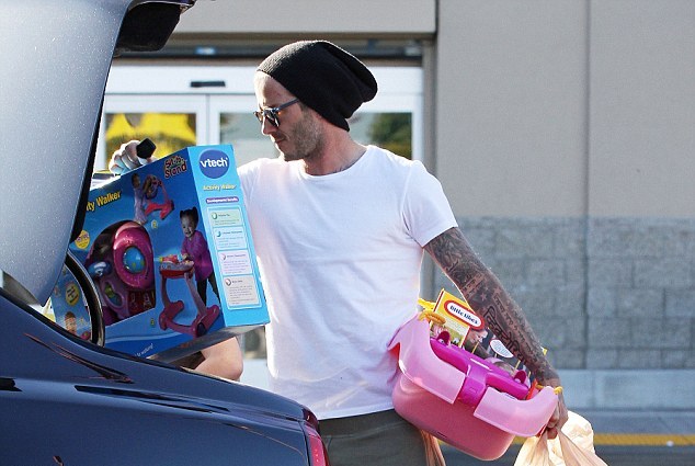 Έτσι ο 36χρονος άσος του ποδοσφαίρου εθεάθη στο Λος Άντζελες να αγοράζει για την μικρή Harper ένα παιχνίδι που θα την βοηθήσει να σταθεί αλλά και να κάνει τα πρώτα της βήματα.