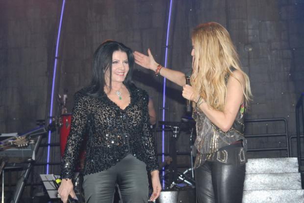 Όπως ήταν αναμενόμενο, η Άννα Βίσση ανέβασε στη σκηνή και τις δύο γυναίκες που την τίμησαν με την παρουσία τους στο νυχτερινό κέντρο με τον κόσμο να τις αποθεώνει:
