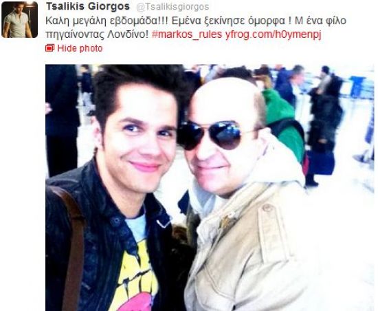 Στο αεροδρόμιο ο Γιώργος Τσαλίκης βρήκε το Μάρκο Σεφερλή και… αγαλίασε η καρδιά του. Μας ευχήθηκε μέσω twitter καλή εβδομάδα και μας αποχαιρέτησε για το Λονδίνο.