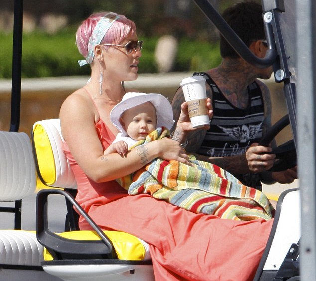 Παρέα με την εννέα μηνών κόρη της και τον σύζυγό της Carey Hart πέρασε το σαββατοκύριακο στη Santa Monica η διάσημη τραγουδίστρια Pink.