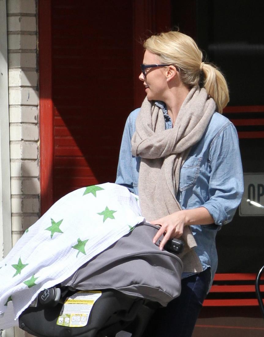 Από τον ήλιο αλλά και τους παπαράτσι προστάτευσε το γιο της η Charlize Theron, κατά την έξοδο της στο Λος Άντζελες. Η 36χρονη ηθοποιός που επέστρεψε στις ΗΠΑ έπειτα από ένα σύντομο ταξίδι στην Ευρώπη εμφανίστηκε χαμογελαστή ενώ ήταν πολύ απλά ντυμένη με ένα τζιν κι ένα πουκάμισο.