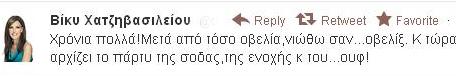 Όλοι μας τρώμε λίγο παραπάνω αυτές τις μέρες αλλά η Βίκυ Χατζηβασιλείου μάλλον το παράκανε αφού όπως δήλωσε νιώθει σαν τον Οβελίξ, που από το πολύ φαγητό των ημερών, δεν αντέχει άλλο.