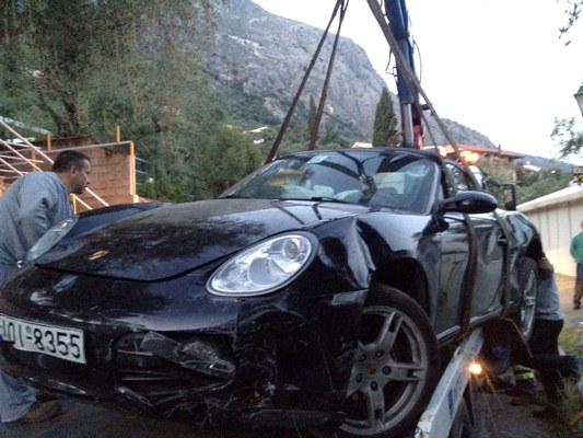 Το διθέσιο πολυτελές αυτοκίνητο, στο οποίο ήταν συνεπιβάτης, ξέφυγε από τον δρόμο κι έπεσε σε χαντάκι μεγάλου βάθους.