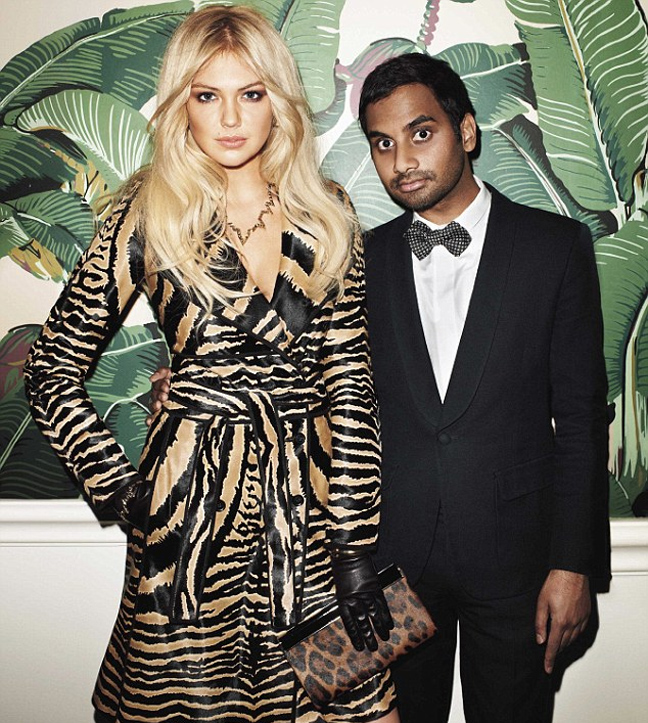 Η Upton φωτογραφίζεται και με τον ηθοποιό Aziz Ansari, φορώντας ένα λεοπάρ παλτό Gucci αξίας 8.900 δολαρίων.