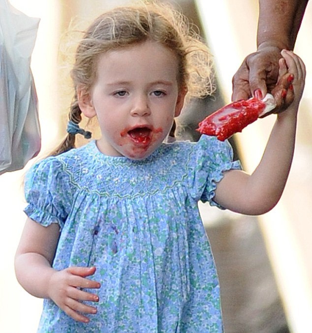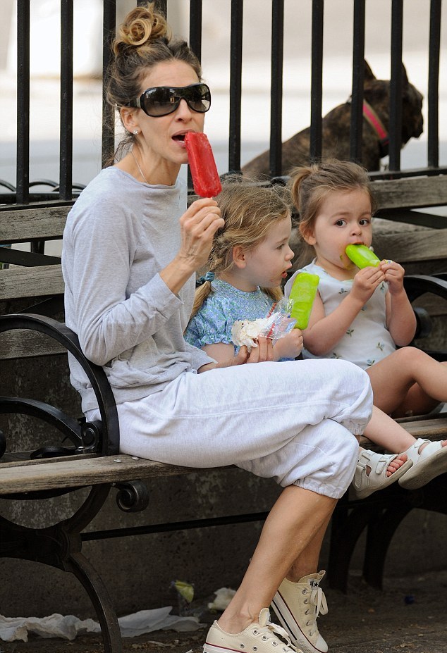Η 47χρονη ηθοποιός έκανε κούνια με τα κορίτσια της ενώ αγόρασαν και παγωτά για να δροσιστούν. Όπως ήταν φυσικό οι μικρές έγιναν χάλια απολαμβάνοντας το παγωτό τους.