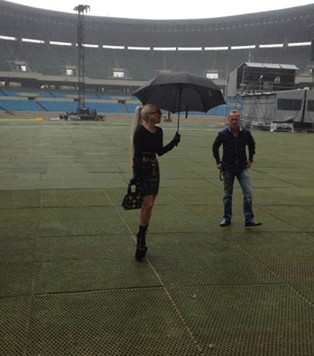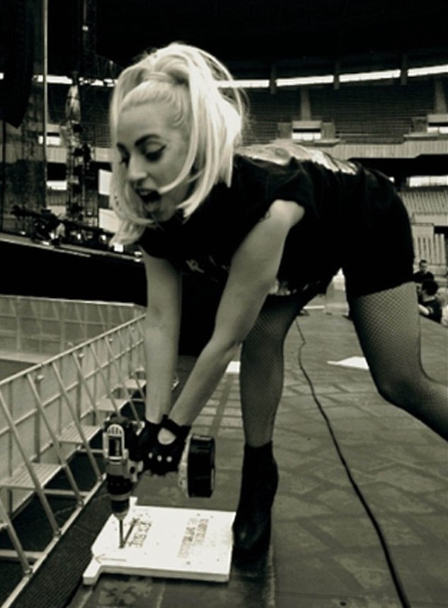 Στα διαλείμματα από τις πρόβες, δεν κάθεται και το «ρίχνει» στις χειρωνακτικές εργασίες. Πήρε λοιπόν ένα ηλεκτρικό τρυπάνι και άρχισε να στερεώνει το δάπεδο στο 70.000 θέσεων στάδιο.