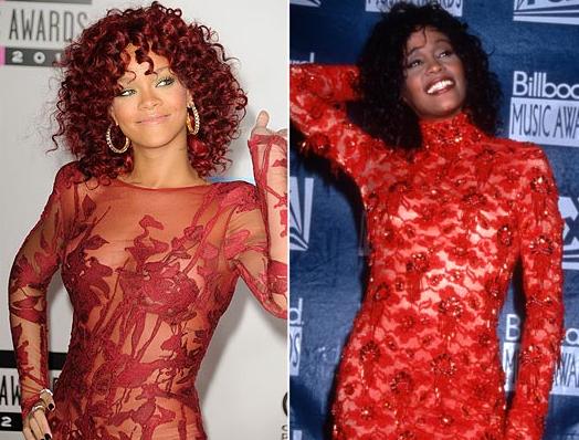 Ας δούμε όμως τις ομοιότητες μεταξύ των δύο διασημοτήτων. Κατ’αρχήν μεγάλωσαν και οι δύο σε χριστιανικές κοινότητες, η Whitney στο New Jersey και η Rihanna στα Barbados τραγουδώντας μάλιστα στην εκκλησία της ενορίας τους.