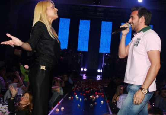 Φυσικά, όταν οι δύο καλλιτέχνες συναντήθηκαν επί σκηνής, το κέφι άναψε για τα καλά και τα πανέρια με τα λουλούδια έπεφταν βροχή.