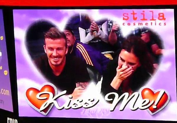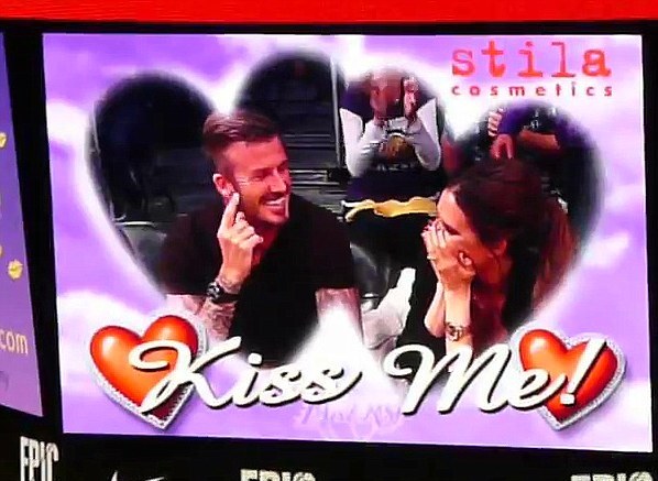 Την έπιασαν όμως οι ντροπές, όταν σε αγώνα μπάσκετ στον οποίο παρευρέθηκε μαζί με τον σύζυγό της David, την «συνέλαβε» η μεγάλη οθόνη του γηπέδου να του δίνει ένα παθιασμένο φιλί.