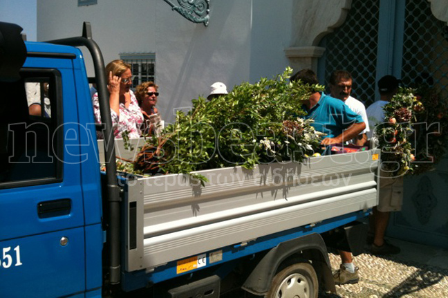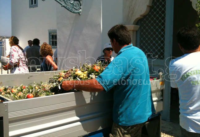 Προϊόντα της ελληνικής μάνας γης προτίμησε το ζεύγος Νικόλαος-Τατιάνα για τον στολισμό της εκκλησίας του Αγίου Νικολάου που θα τελεστεί σε λίγη ώρα το μυστήριο.