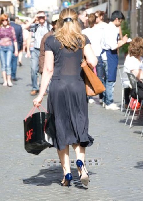 Οι παπαράτσι τη φωτογράφησαν σε κεντρικό δρόμο της Ρώμης να κάνει τα ψώνια της, φορώντας ένα σκούρο ημιδιαφανές φόρεμα, που αγκάλιαζε το καλοδιατηρημένο σώμα της και αποκάλυπτε το στρινγκ της.