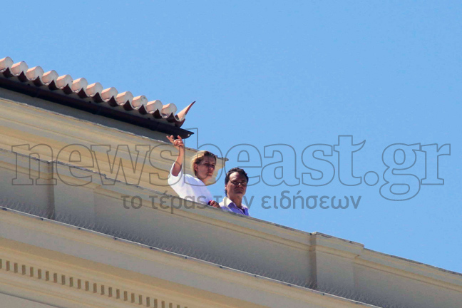 Πέντε ώρες πριν το γάμο της με τον εκλεκτό της καρδιάς της Νικόλαο, η Τατιάνα Μπλάτνικ βγήκε στο μπαλκόνι του πολυτελούς ξενοδοχείου, στο οποίο διαμένει στις Σπέτσες και στο οποίο θα ετοιμαστεί και θα κατευθυνθεί κατόπιν στον Ιερό Ναό του Αγίου Νικολάου.