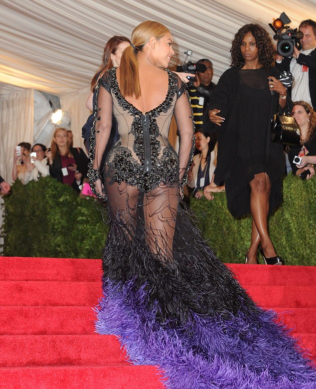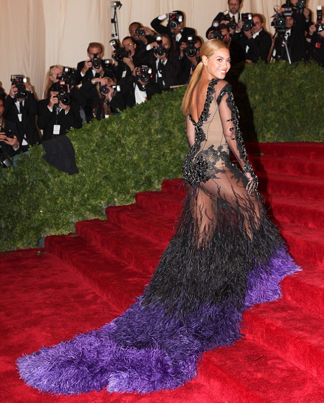 Αυτή που ξεχώρισε όμως και άφησε τους πάντες με το στόμα ανοιχτό ήταν η Beyonce. Έχοντας χάσει τα κιλά της εγκυμοσύνης, η τραγουδίστρια επέλεξε μια see through τουαλέτα με δαντέλα που έκρυβε τα επίμαχα σημεία και μωβ φτερά του οίκου Givenchy.