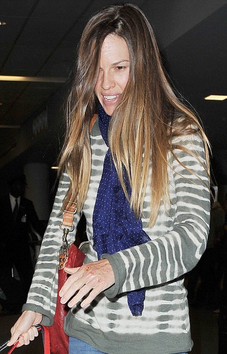Με ένα σοβαρό έγκαυμα στο αριστερό της χέρι εμφανίστηκε η ηθοποιός Hilary Swank στο αεροδρόμιο JFK της Νέας Υόρκης. Η ίδια δεν αποκάλυψε περισσότερα για το «ατύχημά» της όμως φαίνεται πως την ταλαιπωρεί.