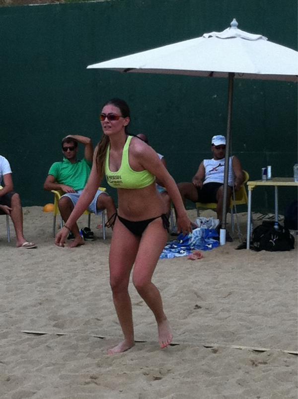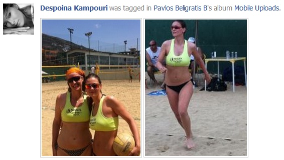 Φωτογραφίες της Δέσποινας Καμπούρη να παίζει beach volley με την Έλενα Οικονόμου, σήμερα Σάββατο 12 Μαΐου, ανάρτησε στο facebook ο πρωταθλητής Ελλάδας Παύλος Μπελιγράτης.