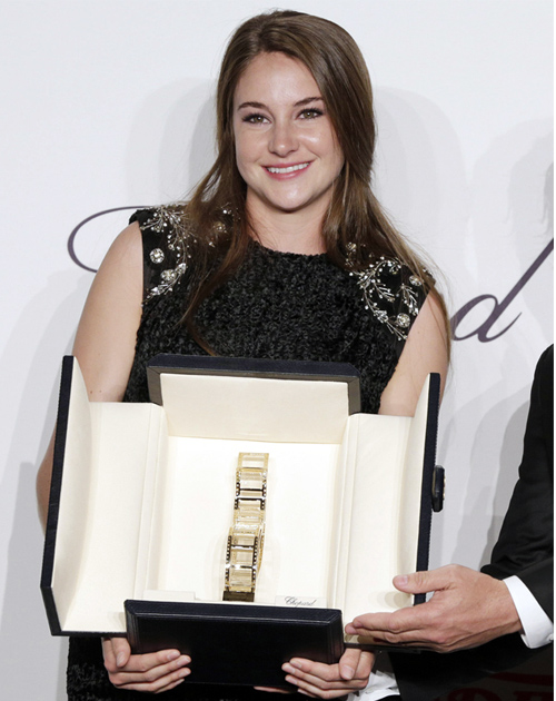 Shailene Woodley, η Αμερικανίδα ηθοποιός, που τιμήθηκε με το Trophee Chopard 2012, φόρεσε ένα ζευγάρι σκουλαρίκια σε λευκό χρυσό 18 καράτια με διαμάντια και και ένα μπρασελέ σε λευκό χρυσό με διαμάντια σε σχήμα καρδιάς (24.50 καράτια).