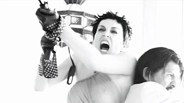 Η 54χρονη ηθοποιός, φορώντας μαύρη περούκα, πολύ αποκαλυπτικά ρούχα και ζαρτιέρες, μας δείχνει τον άλλο της εαυτό, που είναι πιο άγριος αλλά εξίσου σέξι.