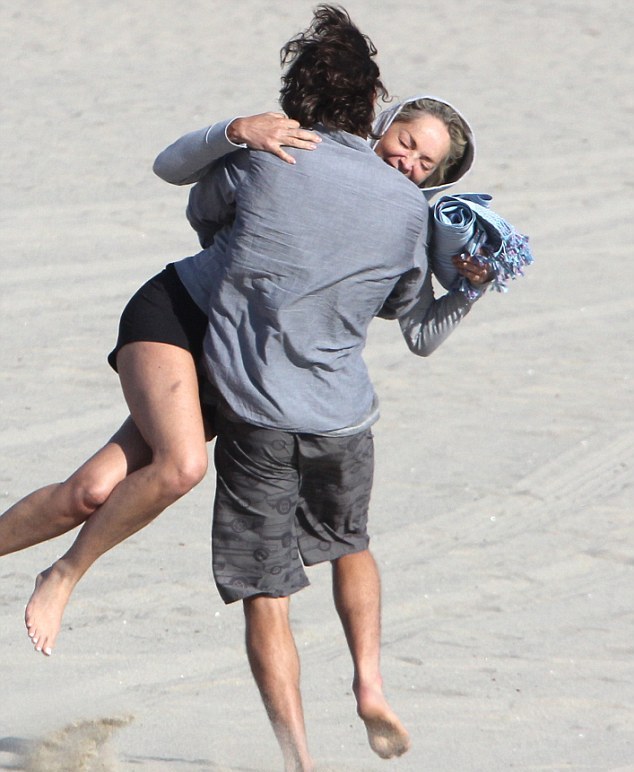 Μάλιστα ο νεαρός αγαπημένος της Stone, δεν σταμάτησε λεπτό να την αγκαλιάζει, να τη φιλά, να την πειράζει, να της κάνει μασάζ, και να παίζει συνεχώς μαζί της στην παραλία.