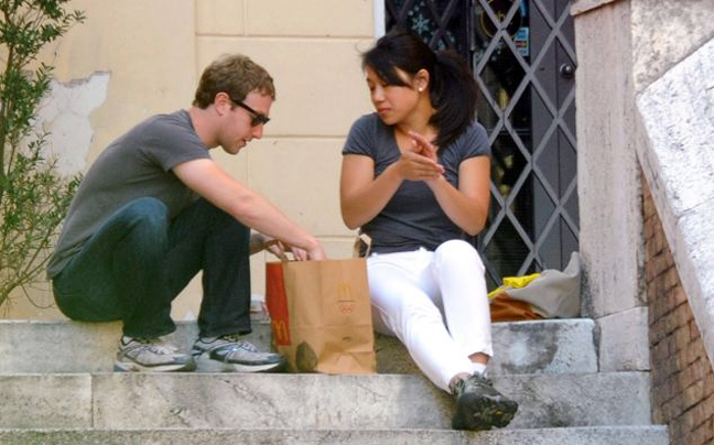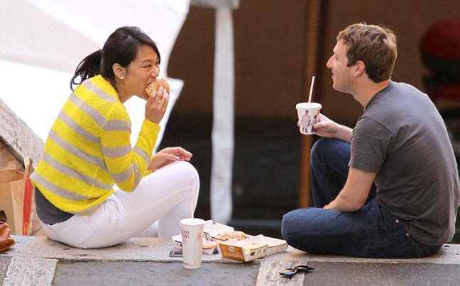 Ο Mark Zuckerberg, ένας από τους πλουσιότερους ανθρώπους στο κόσμο, με περιουσία που υπολογίζεται στα 14.7 δισεκατομμύρια ευρώ, ταξίδεψε με τη γυναίκα του στη Ρώμη για το μήνα του μέλιτος. Ο Mr. Facebook δεν ενθουσιάστηκε από τα ρομαντικά εστιατόρια της «αιώνιας πόλης» και αποφάσισε να δειπνήσει με τη σύζυγο του, Priscilla Chan, σε γνωστή αλυσίδα fast-food.