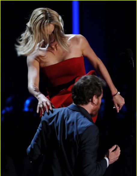 Τι μπουνιές, τι κλωτσιές, μαρτύρησε στα χέρια της ο άτυχος ηθοποιός. Βέβαια όλο αυτό ήταν μία σκηνή που φτιάχτηκε για να παρουσιάσουν το βραβείο για την καλύτερη σκηνή πάλης σε μια ταινία στα βραβεία MTV Μovie Award αφού οι δύο τους είναι πολύ καλοί φίλοι.