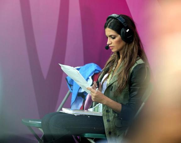 Ο φωτογραφικός φακός απαθανάτισε την Carbonero την ώρα που έδινε τη… μάχη του ρεπορτάζ.