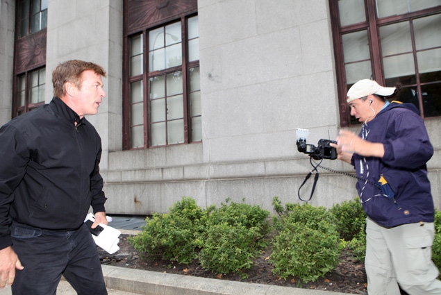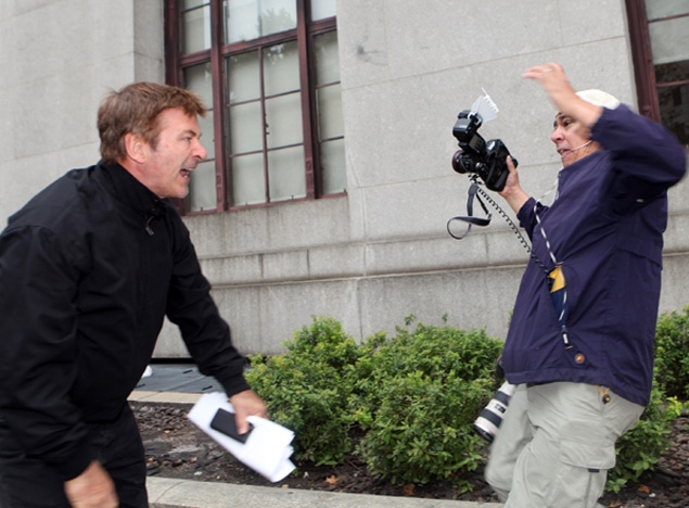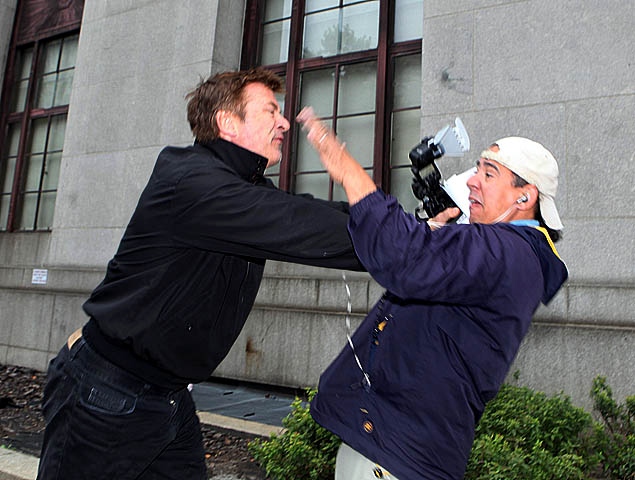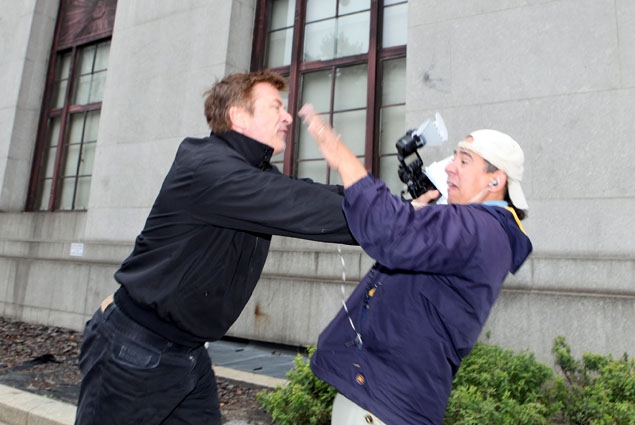 Ο πρωταγωνιστής της δημοφιλούς αμερικανικής τηλεοπτικής σειράς «30 Rock» βρισκόταν με την 28χρονη αρραβωνιαστικιά του, Hilaria Thomas, έξω από το Marriage License Bureau που μόλις είχαν επισκεφτεί για να πάρουν άδεια γάμου. Ο Santos τον πλησίασε για να τον φωτογραφήσει αλλά ο 54χρονος ηθοποιός έγινε «θηρίο».