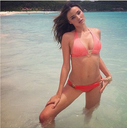 Με κοραλί μπικίνι και με κορμί που κόβει την ανάσα, η σέξι Miranda ξεπροβάλλει σαν γοργόνα από τα κρυστάλλινα νερά και μας εύχεται καλό καλοκαίρι.