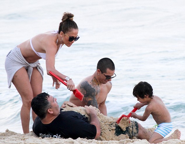 Μάλιστα τα παιδιά της δεν δίστασαν να «θάψουν» και τον σωματοφύλακά της στην άμμο κάτι που τους προκάλεσε πολύ γέλιο.