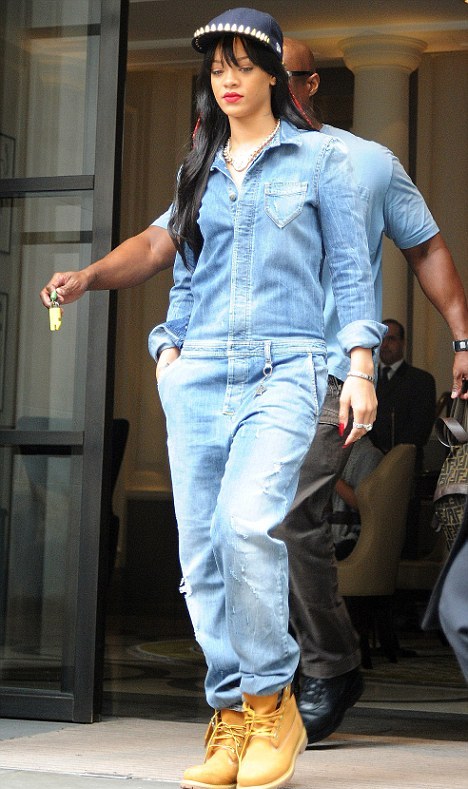 Το μαλλί της ήταν μαύρο και μακρύ, φορούσε καπέλο και μια ολόσωμη τζιν φόρμα με αρβύλες. Το συγκεριμένο outifit το επέλεξε για να πάει μία βόλτα στο Λονδίνο.