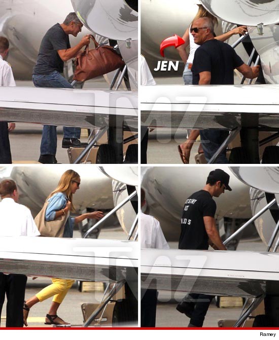 Τα γεγονότα έχουν ως εξής: Ο Τζωρτζ Κλούνεϊ, συνοδευόμενος από την αγαπημένη του και την Τζένιφερ Άνιστον πήραν το ιδιωτικό του τζετ και πέταξαν από την Ελβετία στο Λονδίνο στα μέσα της εβδομάδας. Η Τζένιφερ προσπάθησε να κρυφτεί όμως ο φακός των παπαράτσι δεν αστειεύεται…