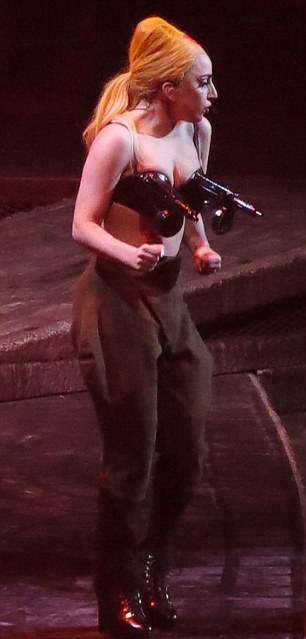 Εκτός από το νέο στιλ του κρεατοφορέματος που έχει γίνει μάλλον κρεατο – κορμάκι η εκκεντρική σταρ αυτή τη φορά είχε και ένα κορμάκι με πολυβόλα στο στήθος!