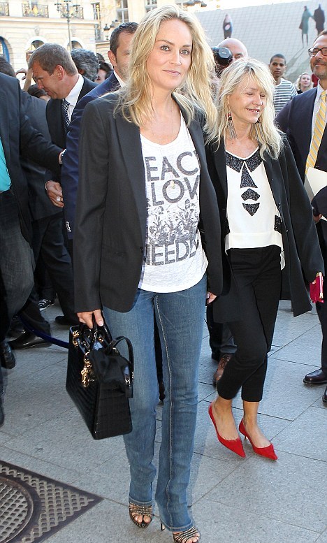 Αυτή τη φορά η Sharon Stone είπε να είναι πιο σεμνή και ντύθηκε απλά και κομψά. Φόρεσε το τζιν της, μία λευκή μπλούζα κι ένα μαύρο σακάκι κι έκανε την βόλτα της στο Παρίσι.