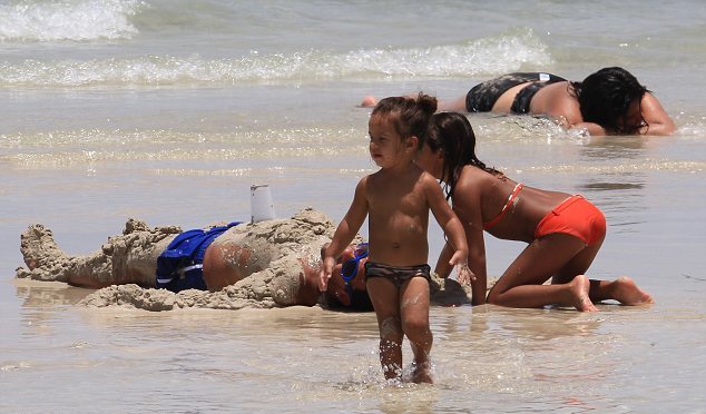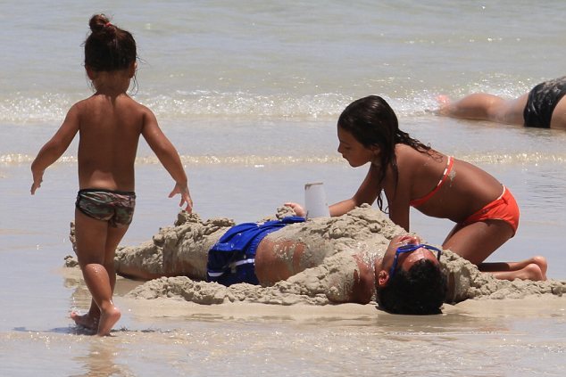 Η κάμερα των παπαράτσι τον απαθανάτισε σε παραλία όπου έπαιζε ασταμάτητα με τις μικρές Florencia και Katia και μάλιστα τις άφησε να τον… θάψουν στην άμμο.