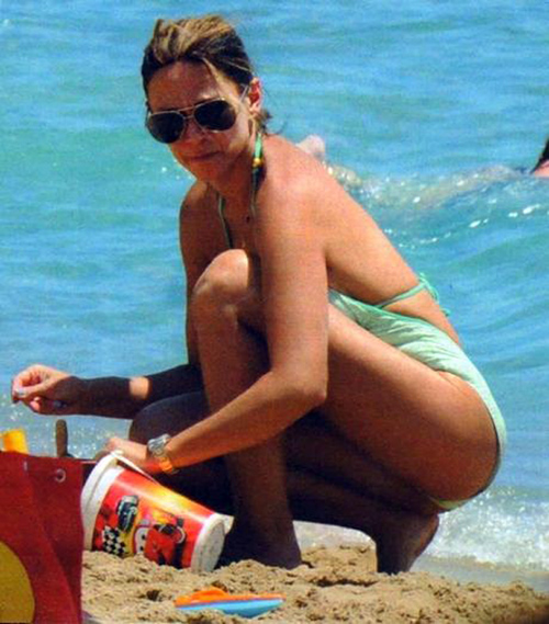 Η Έλλη, όπως φαίνεται στις φωτογραφίες του Hello, φορούσε ένα βεραμάν ολόσωμο μαγιό, και είτε απολάμβανε μία βουτιά στην θάλασσα είτε έπαιζε με τον γιο της μέσα και έξω από το νερό.