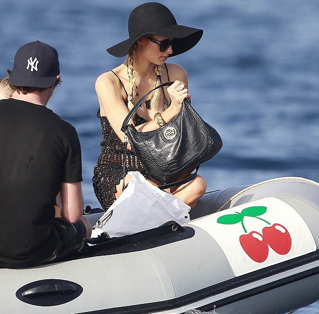 Φορώντας ένα μαύρο καπέλο το οποίο είχε συνδυάσει με ένα κίτρινο μπικίνι, η Paris δεν σταμάτησε να κουνάει τη μέση της και να μιλάει με φίλους πάνω στο γιοτ.