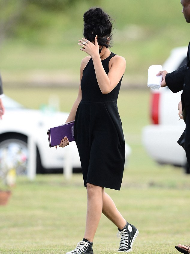 Ντυμένη στα μαύρα και σε άσχημη ψυχολογική κατάσταση, η Rihanna έφτασε στο νεκροταφείο, όπου έγινε η κηδεία της αγαπημένης της γιαγιάς.