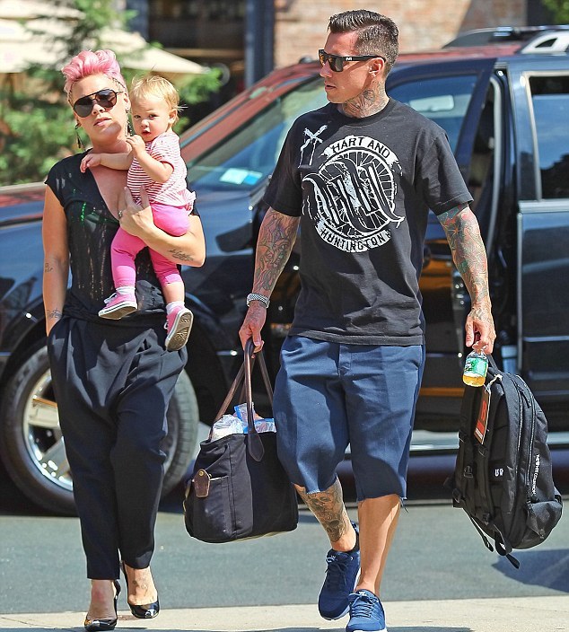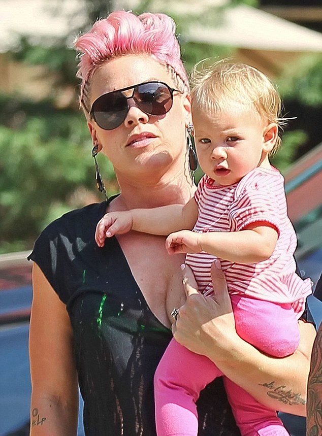 Βόλτα με την κόρη της Willow που είναι ήδη ενός έτους βγήκε η Pink και φυσικά ήθελε μαμά και κόρη να είναι ασορτί. Για το λόγο αυτό έντυσε την μικρή στα ροζ από την κορφή ως τα νύχια. Ροζ το μπλουζάκι της μικρής, ροζ το κολάν, ροζ και τα παπούτσια.
