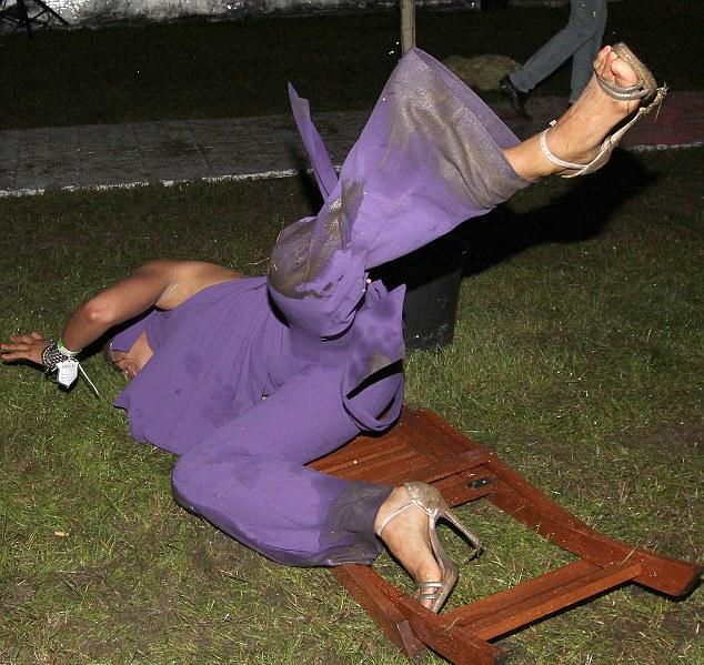 Η πτυσσόμενη καρέκλα πρόδωσε την Layla, η οποία βρέθηκε με τα μούτρα μέσα στη λάσπη. Ο φωτογράφος κατάφερε να πιάσει όλες τις φάσεις της πτώσης, αλλά και τα… μεθεόρτια, με την Layla να προσπαθεί να συμμαζέψει το φόρεμά της για να μην προσφέρει και άλλο θέαμα!