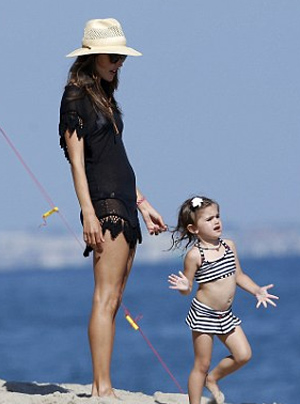 Το μοντέλο φορώντας ένα μπικίνι και ένα see through μαύρο φόρεμα απολαμβάνει οικογενειακές στιγμές χαλάρωσης στην παραλία. Το ζευγάρι φαίνεται πραγματικά ερωτευμένο και ευτυχισμένο ενώ ο Jamie Mazur χθες μοιράστηκε μια πολύ τρυφερή στιγμή με τη μητέρα των δύο παιδιών του την οποία έσκυψε και φίλησε τρυφερά.