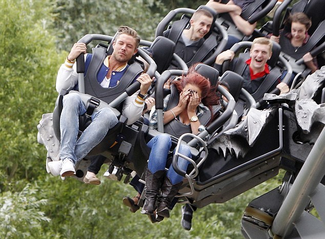 Το ζευγάρι πέρασε μία συναρπαστική μέρα στο Thorpe Park, με την βρετανίδα τηλεπερσόνα να μην αποχωρίζεται τα τακούνια της ούτε και στο λούνα παρκ ενώ τις εντυπώσεις έκλεψε το πλούσιο μπούστο της που αναδεικνυόταν από το εφαρμοστό μπλουζάκι της.