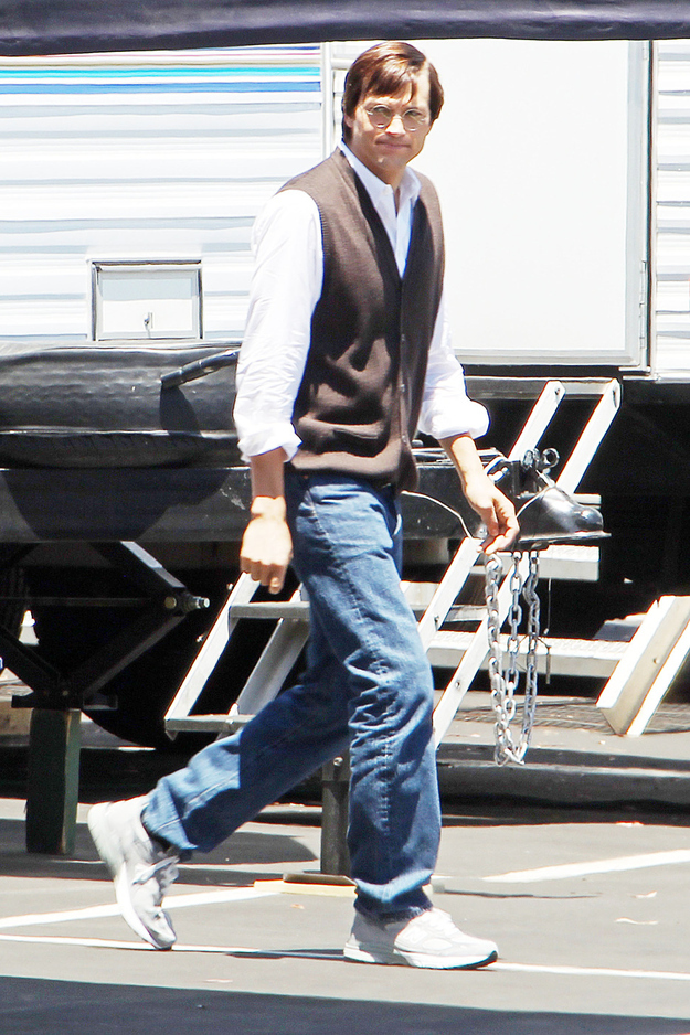 Αυτές είναι οι πρώτες φωτογραφίες που κυκλοφόρησαν από τα γυρίσματα της ταινίας. Ο 34χρονος είναι πολύ μακριά από την κανονική του εμφάνιση και έχει αντιγράψει ακριβώς τον τρόπο που περπατούσε και κινούταν ο Jobs.