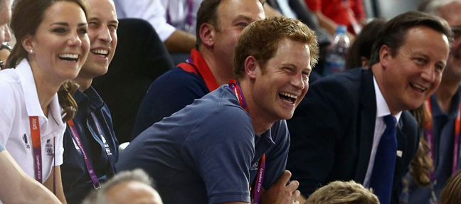 Δίπλα στο ζευγάρι κάθονταν ο πρίγκιπας Χάρι και ο Βρετανός πρωθυπουργός Ντέιβιντ Κάμερον.