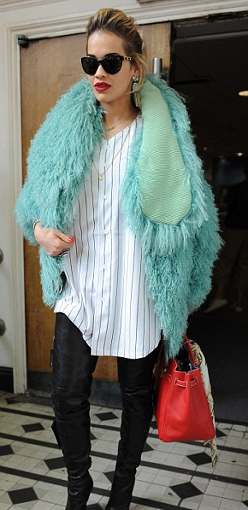 Η Rita Ora που λατρεύει τις εκκεντρικές εμφανίσεις φόρεσε κι ένα κόκκινο κραγιόν για να τονίσει τα χείλη της. Όπως θα δείτε και στις φωτογραφίες οι συγκεκριμένες μπότες είναι από τις αγαπημένες της αφού δεν τις αποχωρίζεται ποτέ.